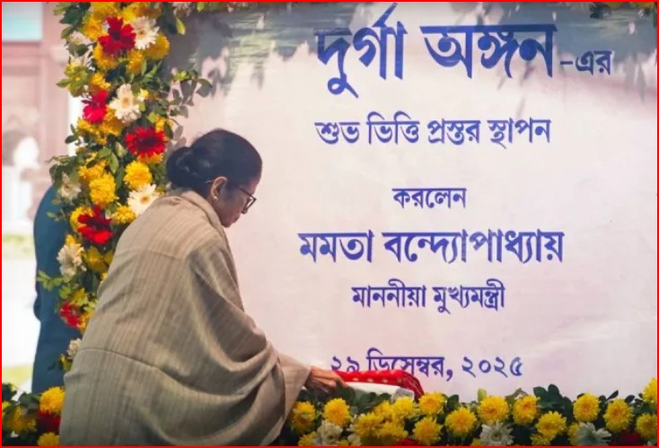 2026 में होने वाले पश्चिम बंगाल विधानसभा चुनाव से पहले मुख्यमंत्री ममता बनर्जी ने एक बड़ा और अहम सियासी कदम उठाया है। मुख्यमंत्री का मौजूदा फोकस हिंदू वोट बैंक पर साफ तौर पर नजर आ रहा है। इसी रणनीति के तहत ममता बनर्जी ने सोमवार को कोलकाता के न्यू टाउन इलाके में भव्य दुर्गा आंगन की नींव रखी। इस मौके पर उन्होंने इसे दुनिया का सबसे बड़ा दुर्गा आंगन बताते हुए कहा कि यहां साल के 365 दिन श्रद्धालु मां दुर्गा के दर्शन कर सकेंगे। ममता बनर्जी के अनुसार, यह परियोजना सिर्फ एक धार्मिक स्थल नहीं, बल्कि बंगाल की सांस्कृतिक विरासत को सहेजने और आगे बढ़ाने की एक बड़ी पहल है।