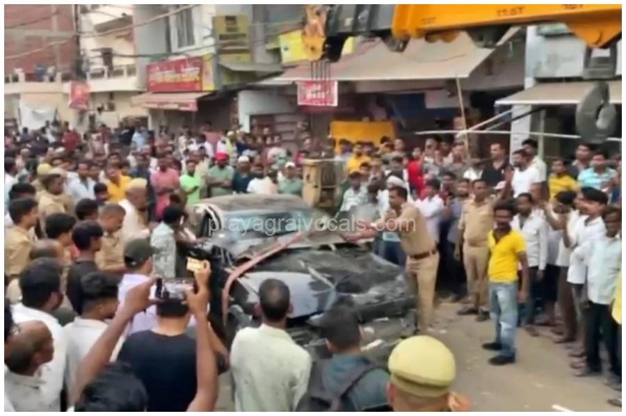 प्रयागराज न्यूज डेस्क: प्रयागराज के धूमनगंज थाना क्षेत्र में दिवाली के दिन हुए भयावह हादसे में जैगुआर कार से छह लोगों को कुचलने वाले रचित मध्यान के खिलाफ अब नामजद FIR दर्ज कर ली गई है। हादसे में 60 वर्षीय एक व्यक्ति की मौत हो गई जबकि आधा दर्जन लोग गंभीर रूप से घायल हुए। शुरुआती जांच में कार चालक अज्ञात था, लेकिन परिवार की तहरीर के बाद पुलिस ने रचित का नाम FIR में दर्ज किया।