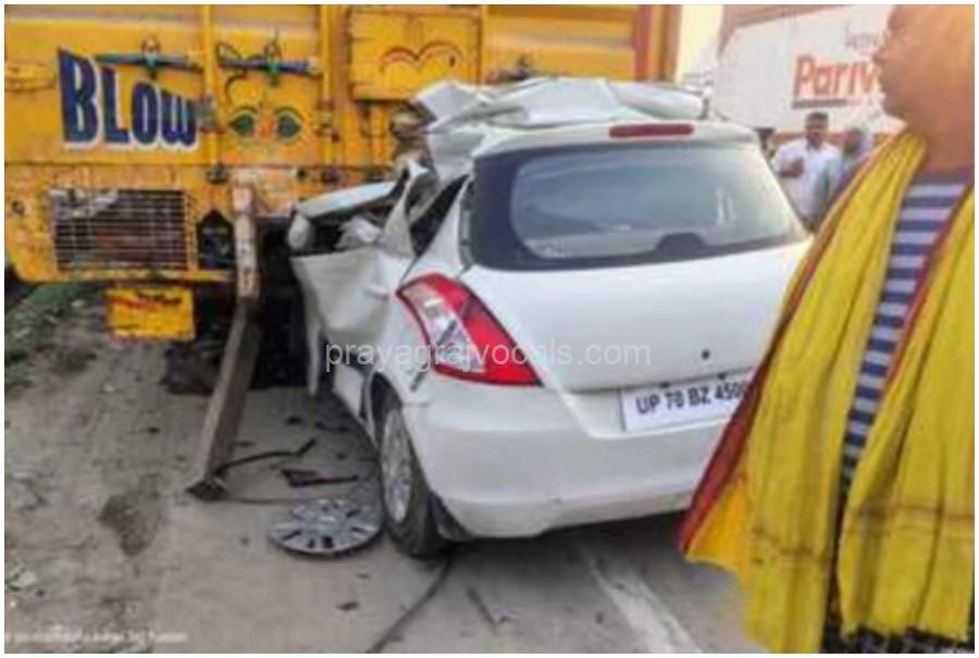 प्रयागराज न्यूज डेस्क: कछवां थाना क्षेत्र के कटका पड़ाव स्थित वाराणसी–प्रयागराज मार्ग पर शुक्रवार सुबह दिल दहला देने वाला सड़क हादसा हो गया। तेज रफ्तार स्विफ्ट कार ट्रक के पीछे की ओर इतनी जोर से घुसी कि कार का आगे का हिस्सा पूरी तरह ट्रक के नीचे समा गया। हादसे में कैंसर पीड़ित पिता-पुत्र समेत कुल छह लोगों की मौत हो गई।