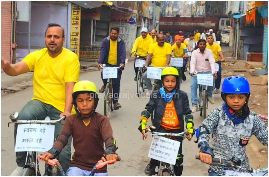 इसके बाद डॉ. वी. के. सिंह ने हरी झंडी दिखाकर यात्रा को आगे बढ़ाया और खुद भी साइकिल चलाते हुए इसमें शामिल हुए। यात्रा मुंशी बाजार और लाला बाजार के आसपास घूमती हुई आगे बढ़ी। रास्ते भर “वृक्ष लगाओ पर्यावरण बचाओ”, “करो योग रहो निरोग”, “हिंदुस्तान जिंदाबाद” जैसे नारे लगाते हुए यह अभियान लोगों को जागरूक करता रहा और हंडिया पीजी कॉलेज के गेट पर समाप्त हुआ।
