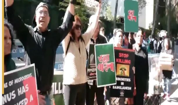 अमेरिका में बसे बांग्लादेशी प्रवासियों ने अपने देश में अल्पसंख्यकों के खिलाफ बढ़ते अत्याचारों के विरोध में प्रदर्शन शुरू कर दिया है। यह विरोध प्रदर्शन खासतौर पर बांग्लादेश के अंतरिम मुख्य सलाहकार मोहम्मद यूनुस के खिलाफ है। प्रदर्शनकारियों का आरोप है कि यूनुस देश को तालिबानी राष्ट्र बनाने में लगे हुए हैं और उनकी नीतियों के कारण बांग्लादेश में धार्मिक और सांस्कृतिक विविधता को भारी खतरा है। प्रदर्शन में “यूनुस पाकिस्तानी है, पाकिस्तान वापस जाओ” जैसे नारे गूंजे, जो उनके प्रति गहरी नाराजगी और अविश्वास को दर्शाते हैं।