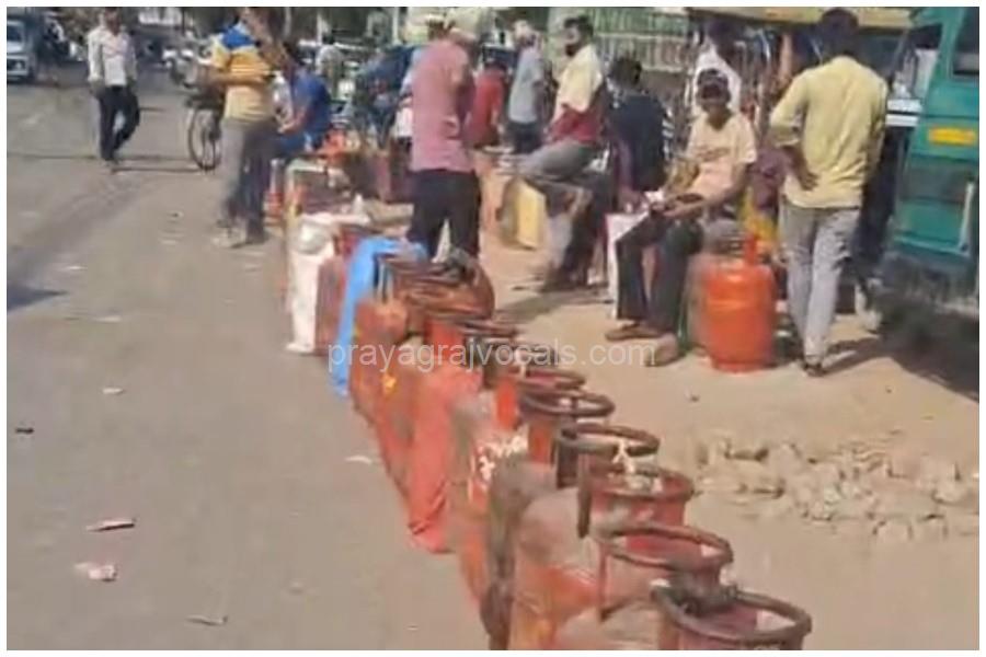 प्रयागराज में गैस के लिए लंबी कतारें, पर्ची और सिलेंडर के लिए जूझ रहे लोग