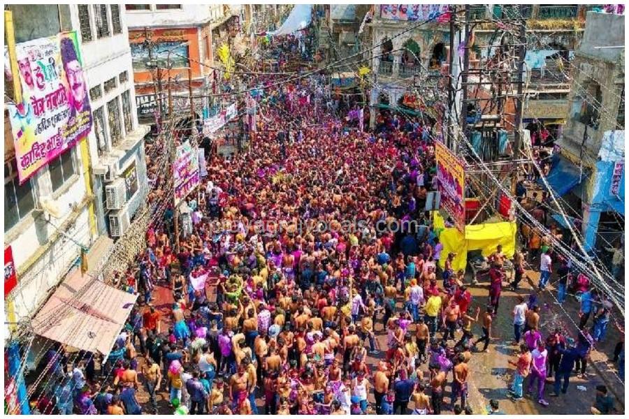 प्रयागराज में रंगों की बरसात, लोकनाथ चौराहे पर छाई ‘कपड़ा फाड़’ होली