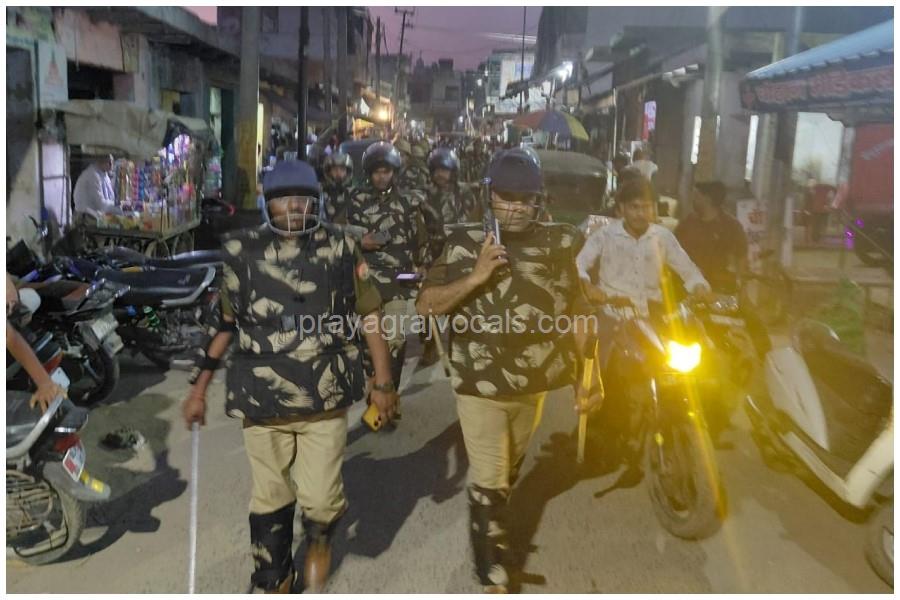 होली से पहले प्रयागराज में पुलिस का फ्लैग मार्च, हुड़दंगियों को सख्त चेतावनी