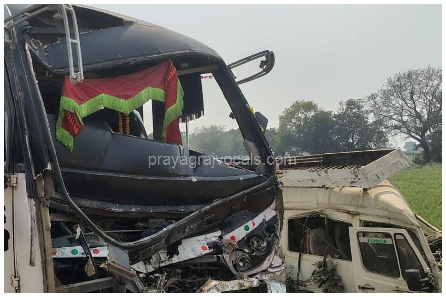 प्रयागराज में छात्रों से भरी बस ट्रक से टकराई, दर्जनों घायल